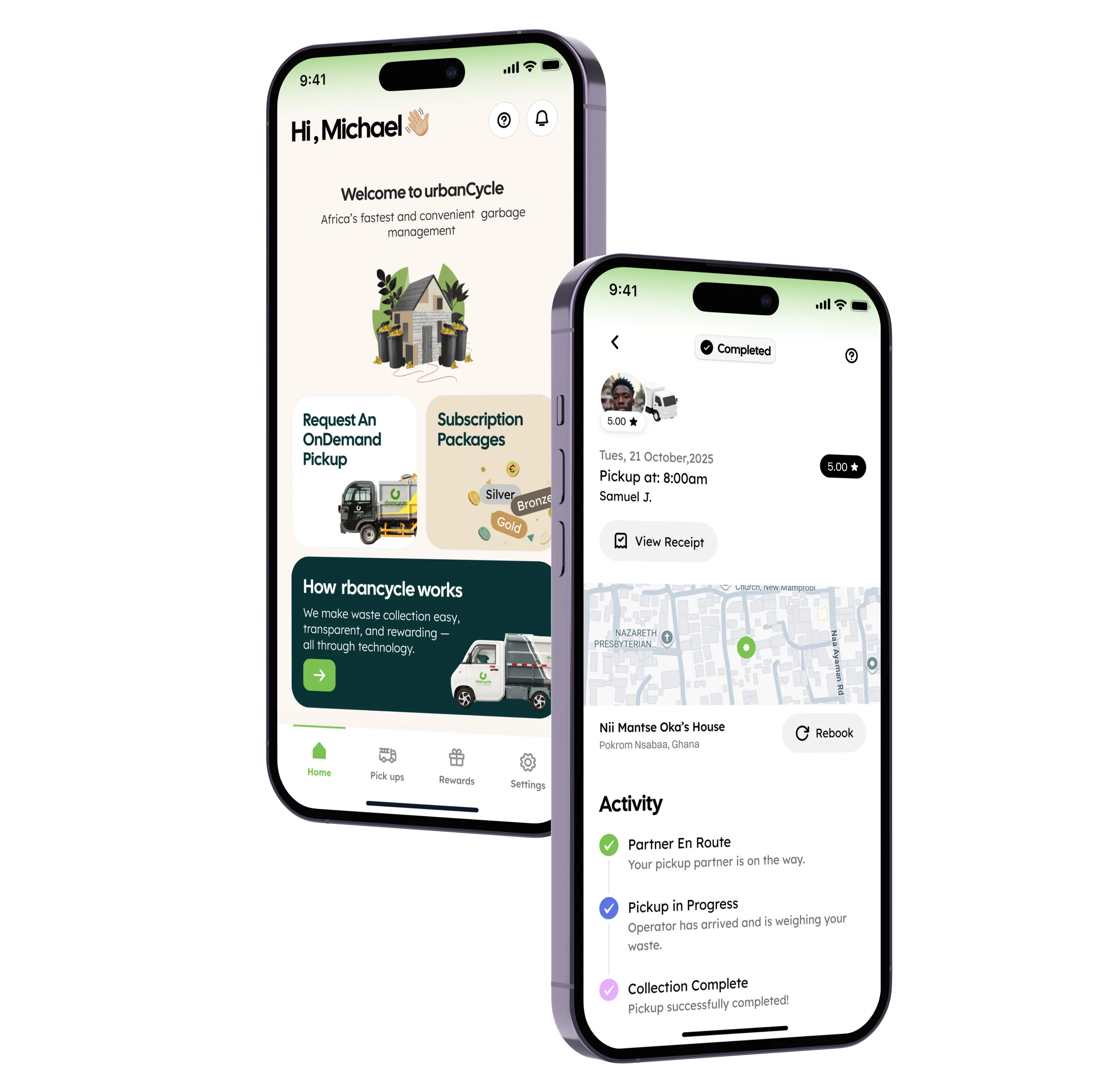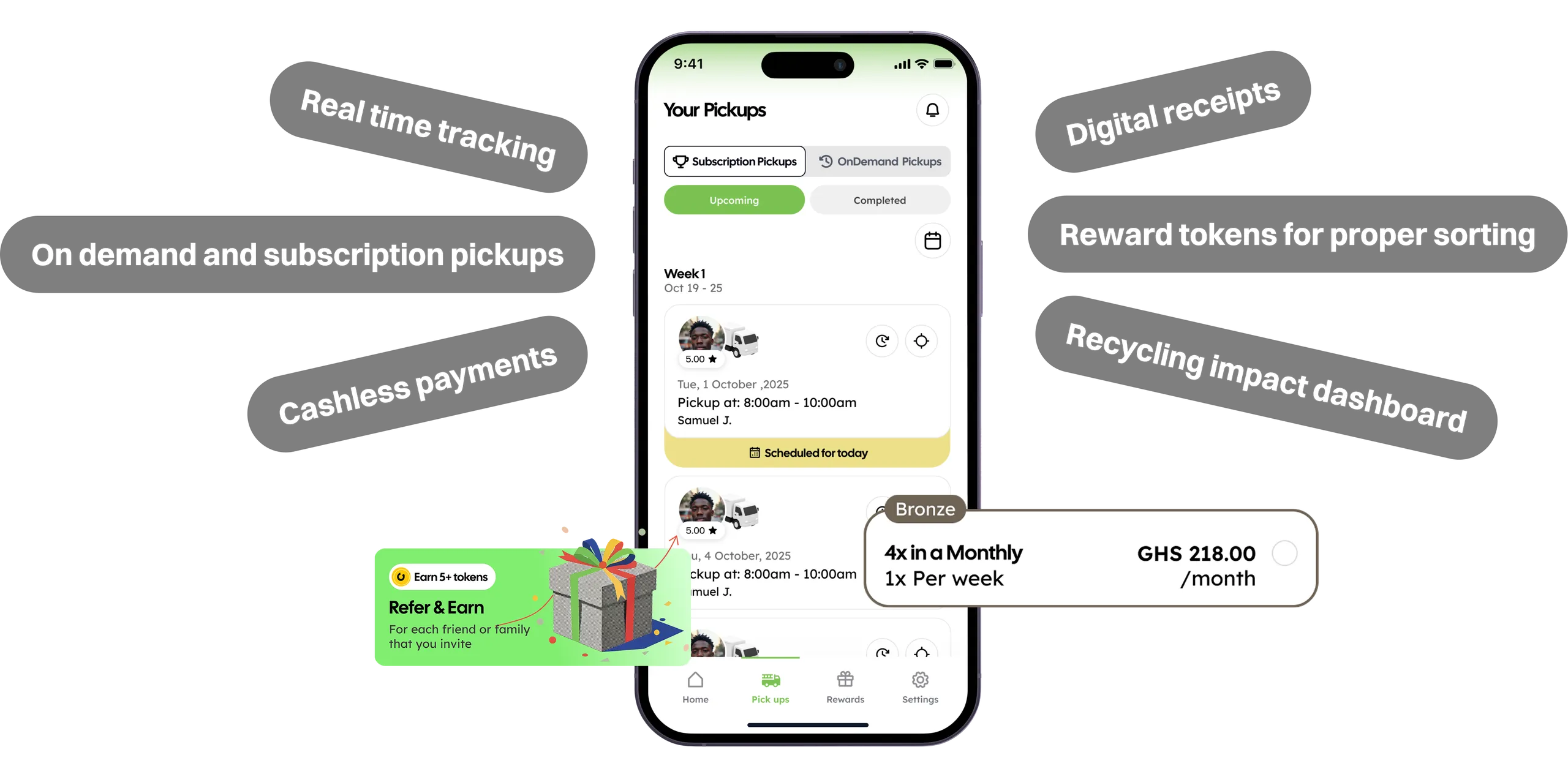 Schedule waste collection in seconds. Track every pickup. Earn rewards for responsible recycling.